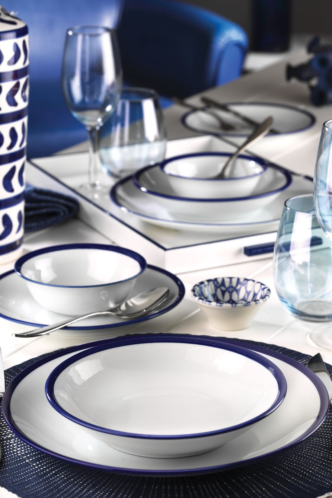 Kutahya Porcelain 24-Piece Dinner Set for 6 People – Navy with Rim Design