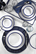 Kutahya Porcelain 24-Piece Dinner Set for 6 People – Navy with Rim Design