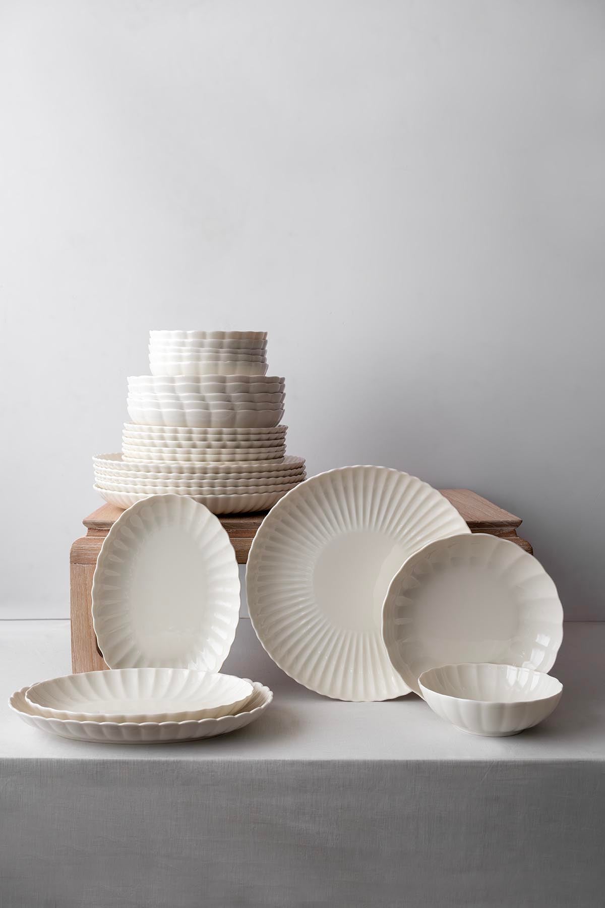 Kutahya Porcelain Bone Luz Form 27 Piece Dinner Set for 6 People
