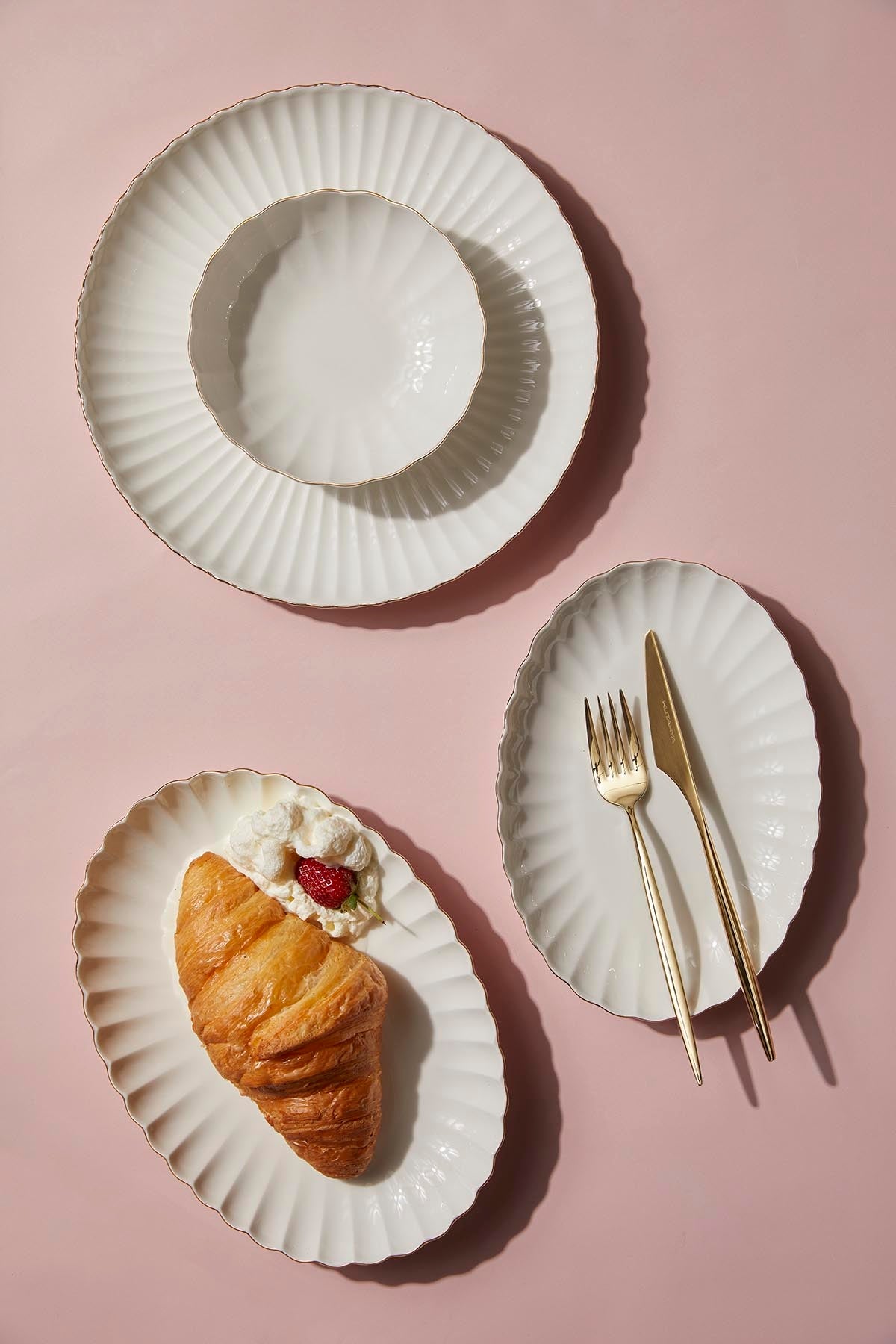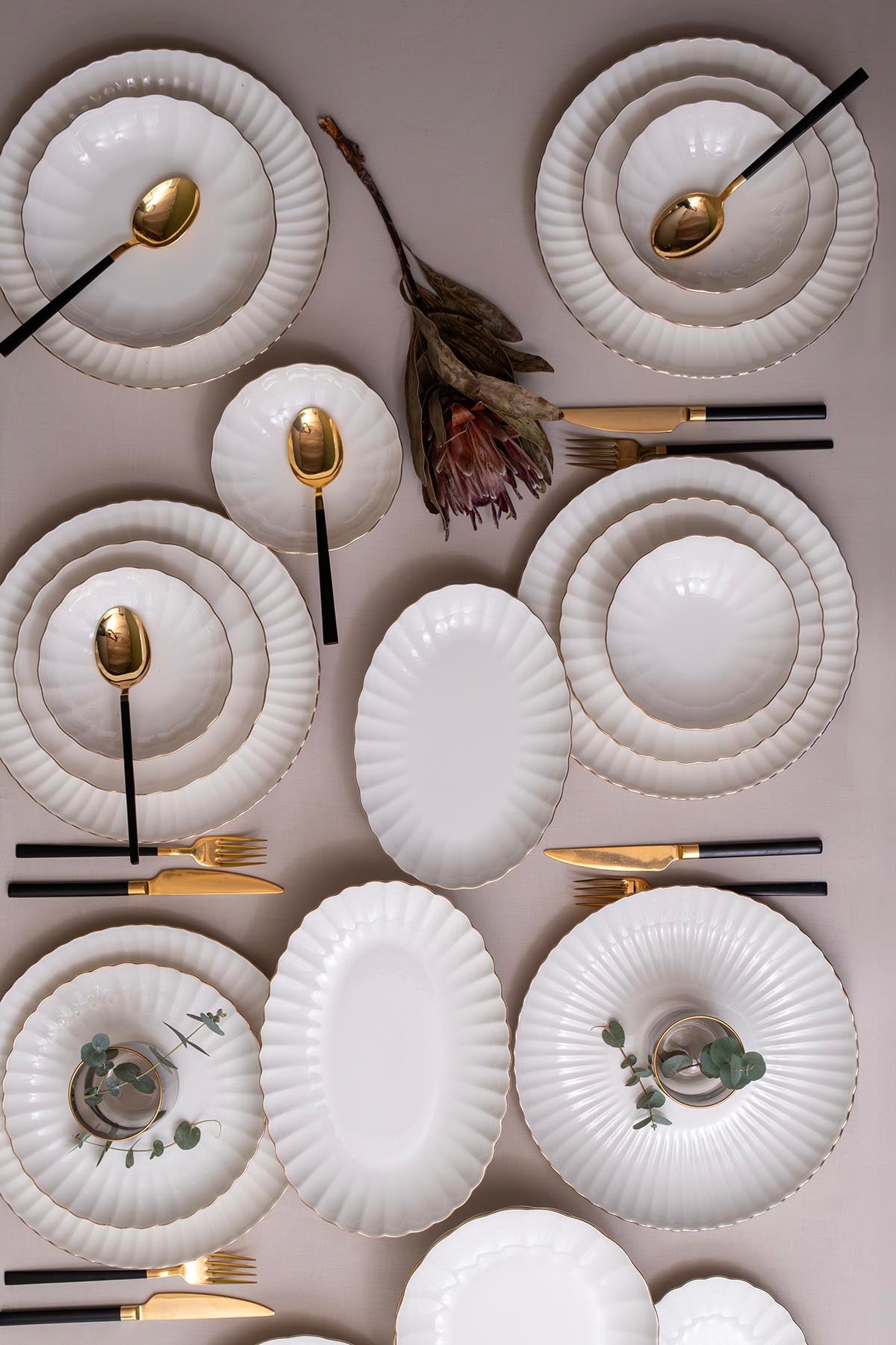 Kutahya Porcelain Bone Luz Form 27-Piece Dinner Set for 6 People – Gold Rim
