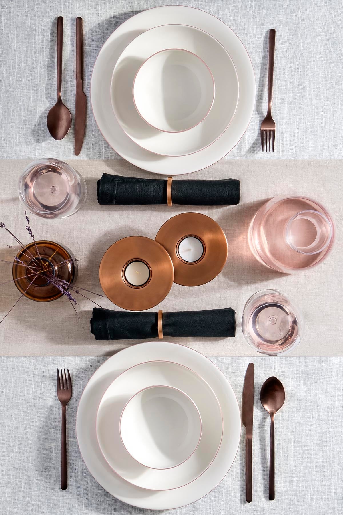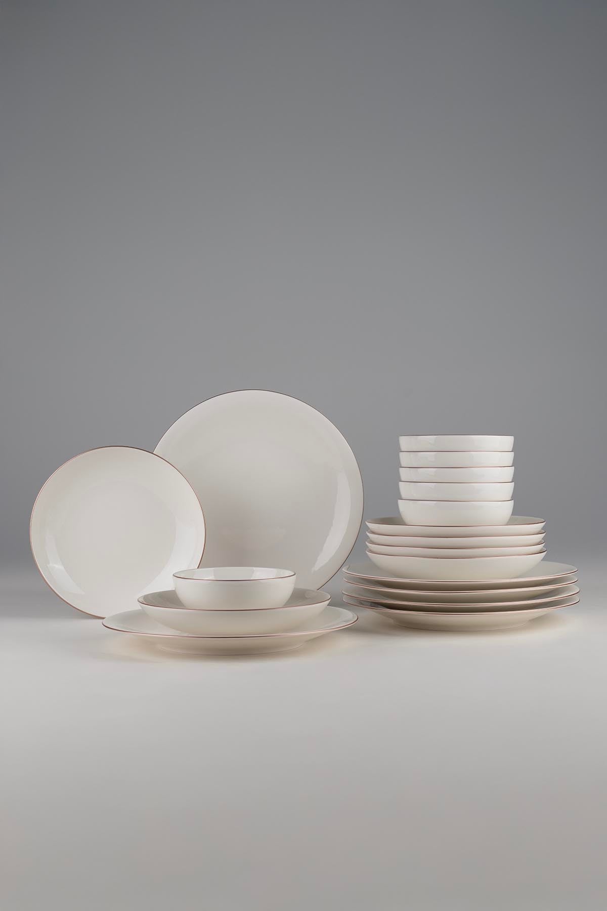 Kutahya Porcelain Bone Zeugma 18-Piece Dinner Set for 6 People – Matte Bronze Rim